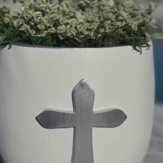 The Faith & Grace succulent arrangement is a timeless symbol of hope, peace, and enduring love. Designed in a soft white ceramic planter adorned with a silver cross, this living arrangement brings comfort and beauty to any space while honoring faith and grace in every detail.